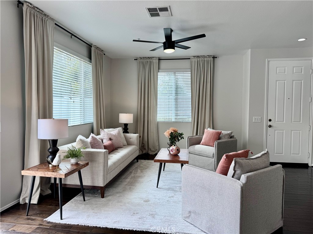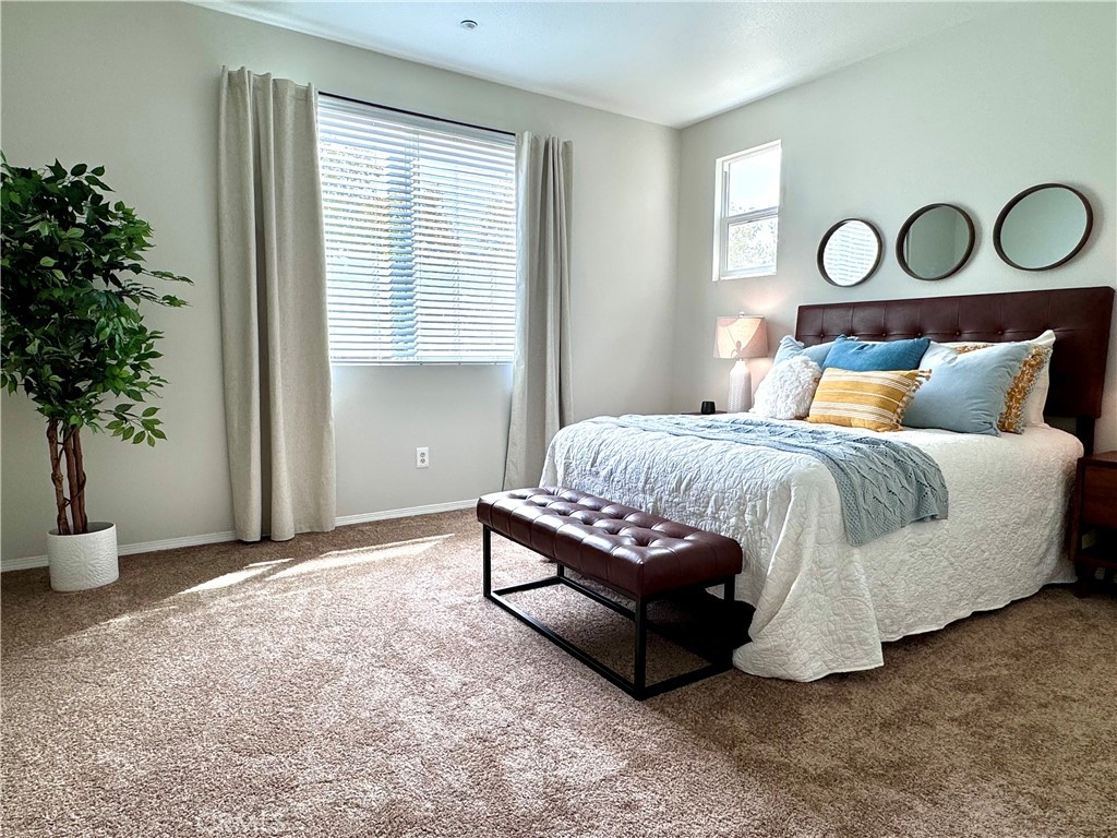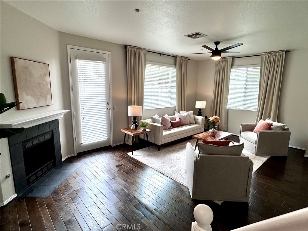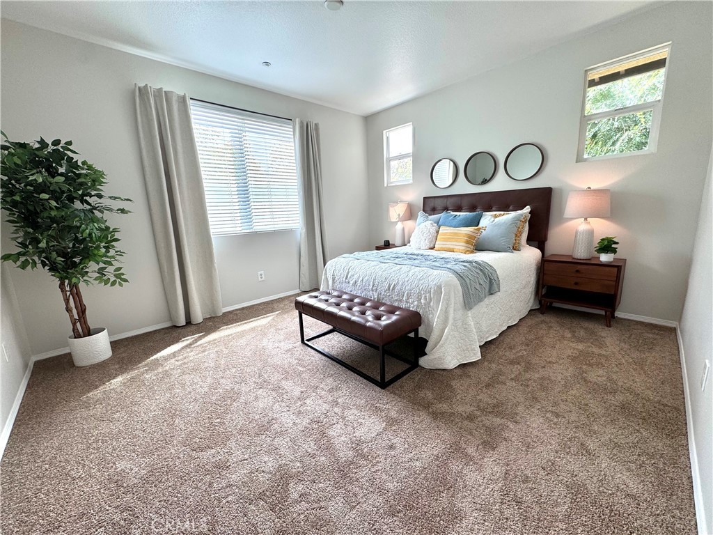 Welcome to this stunning 3-bedroom, 2.5-bath condo in the desirable Rancho Bellago area of Moreno Valley. This nearly 1,500 sq. ft. home features an open layout with new interior paint, new carpet, new stainless steel appliances, new electrical fixtures, recessed lighting, and a cozy fireplace for those cool nights. The spacious kitchen boasts ample cabinetry, a center island, and flows seamlessly into the dining area. The first floor has a half bath for guests, while upstairs, the expansive primary suite includes a walk-in closet and double sinks in the en-suite bathroom. Two additional bedrooms with a common bathroom complete the second floor, offering plenty of space for family or guests. Relax in the large backyard patio, perfect for outdoor dining or family gatherings. Ample parking includes a 2-car garage with new epoxy-coated flooring and guest parking. Community amenities include a pool, spa, and lounge area. Enjoy the convenience of nearby shopping, dining, and freeway access. This condo is ideal for those seeking comfort, style, and a great location. Close to Kaiser Permanente Hospital and Riverside University Health System. Don't miss out on this beautiful home, schedule your private showing today!