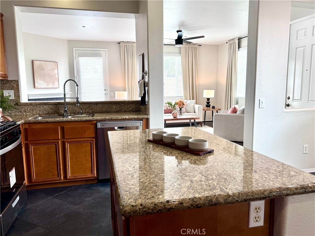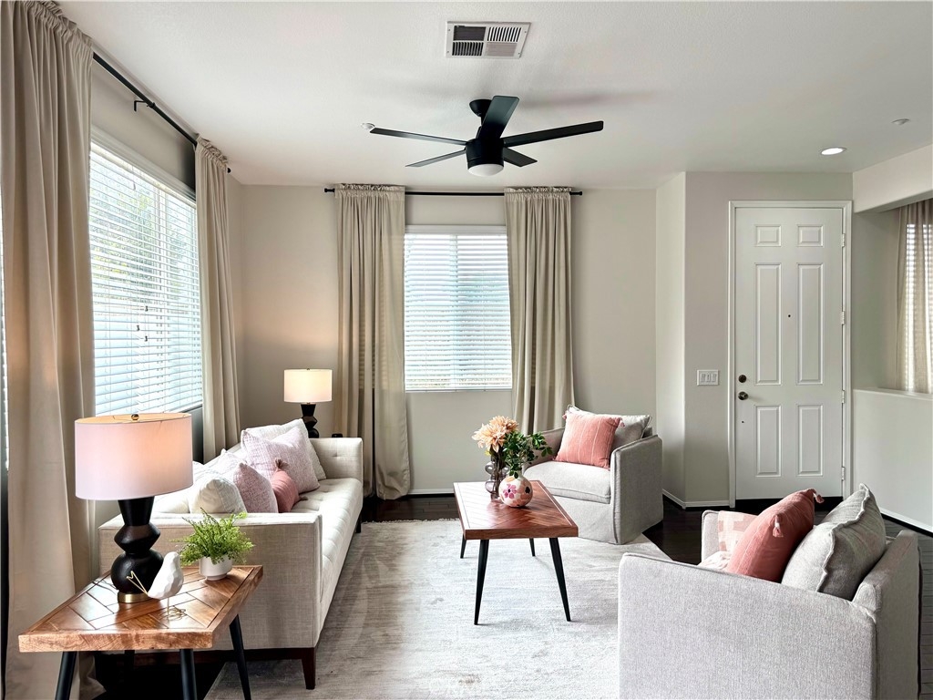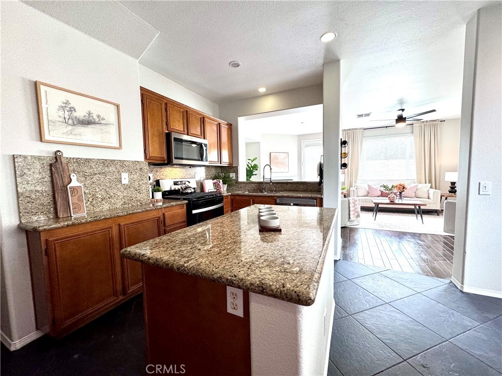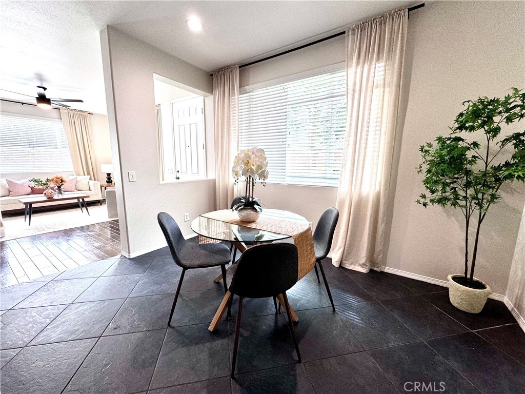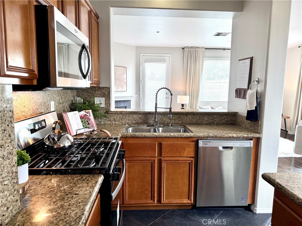 Welcome to this stunning 3-bedroom, 2.5-bath condo in the desirable Rancho Bellago area of Moreno Valley. This nearly 1,500 sq. ft. home features an open layout with new interior paint, new carpet, new stainless steel appliances, new electrical fixtures, recessed lighting, and a cozy fireplace for those cool nights. The spacious kitchen boasts ample cabinetry, a center island, and flows seamlessly into the dining area. The first floor has a half bath for guests, while upstairs, the expansive primary suite includes a walk-in closet and double sinks in the en-suite bathroom. Two additional bedrooms with a common bathroom complete the second floor, offering plenty of space for family or guests. Relax in the large backyard patio, perfect for outdoor dining or family gatherings. Ample parking includes a 2-car garage with new epoxy-coated flooring and guest parking. Community amenities include a pool, spa, and lounge area. Enjoy the convenience of nearby shopping, dining, and freeway access. This condo is ideal for those seeking comfort, style, and a great location. Close to Kaiser Permanente Hospital and Riverside University Health System. Don't miss out on this beautiful home, schedule your private showing today!