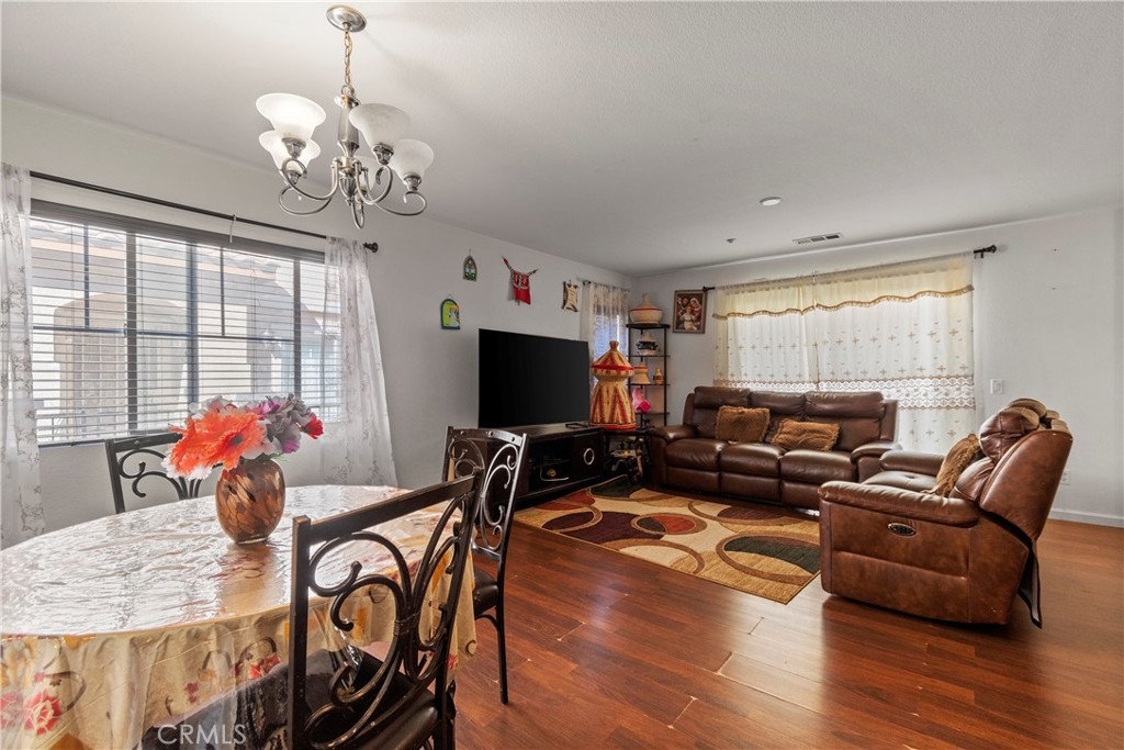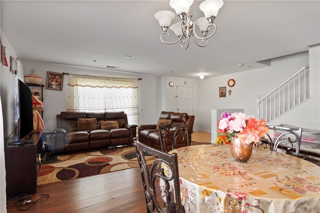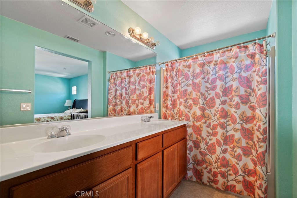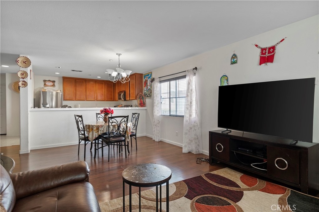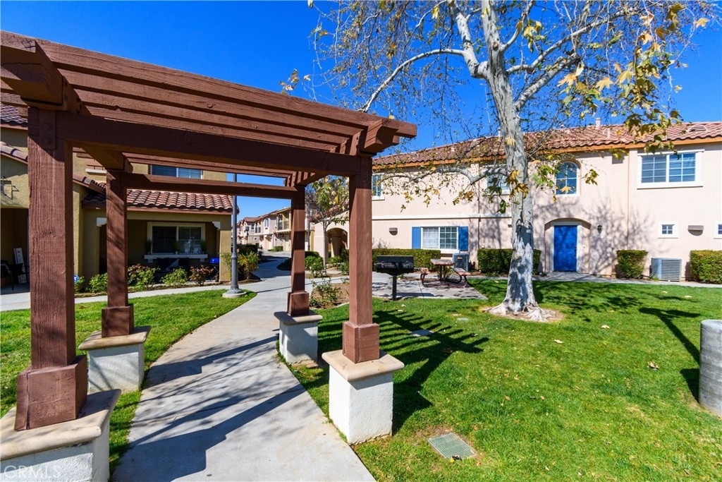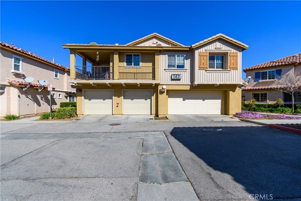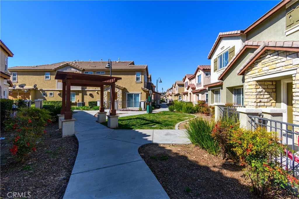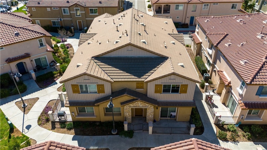 Welcome to Palacio De Oro North community, a gated community nestled in Moreno Valley. Unit #56, this 1444 sqft condo/townhouse offers 2 bedrooms, 2 1/2 baths, and an open plan layout with one car garage and many parking space in the community. The spacious living room seamlessly connects to the kitchen, boasting ample cabinet space and a pantry. Bedrooms are generously sized, complemented by an indoor laundry room for added convenience. The master suite features a walk-in closet and a private bath with dual sinks. HOA covers landscaping, security, and external repairs. While there's no pool, the community enjoys proximity to shopping centers, schools, hospitals, and colleges.